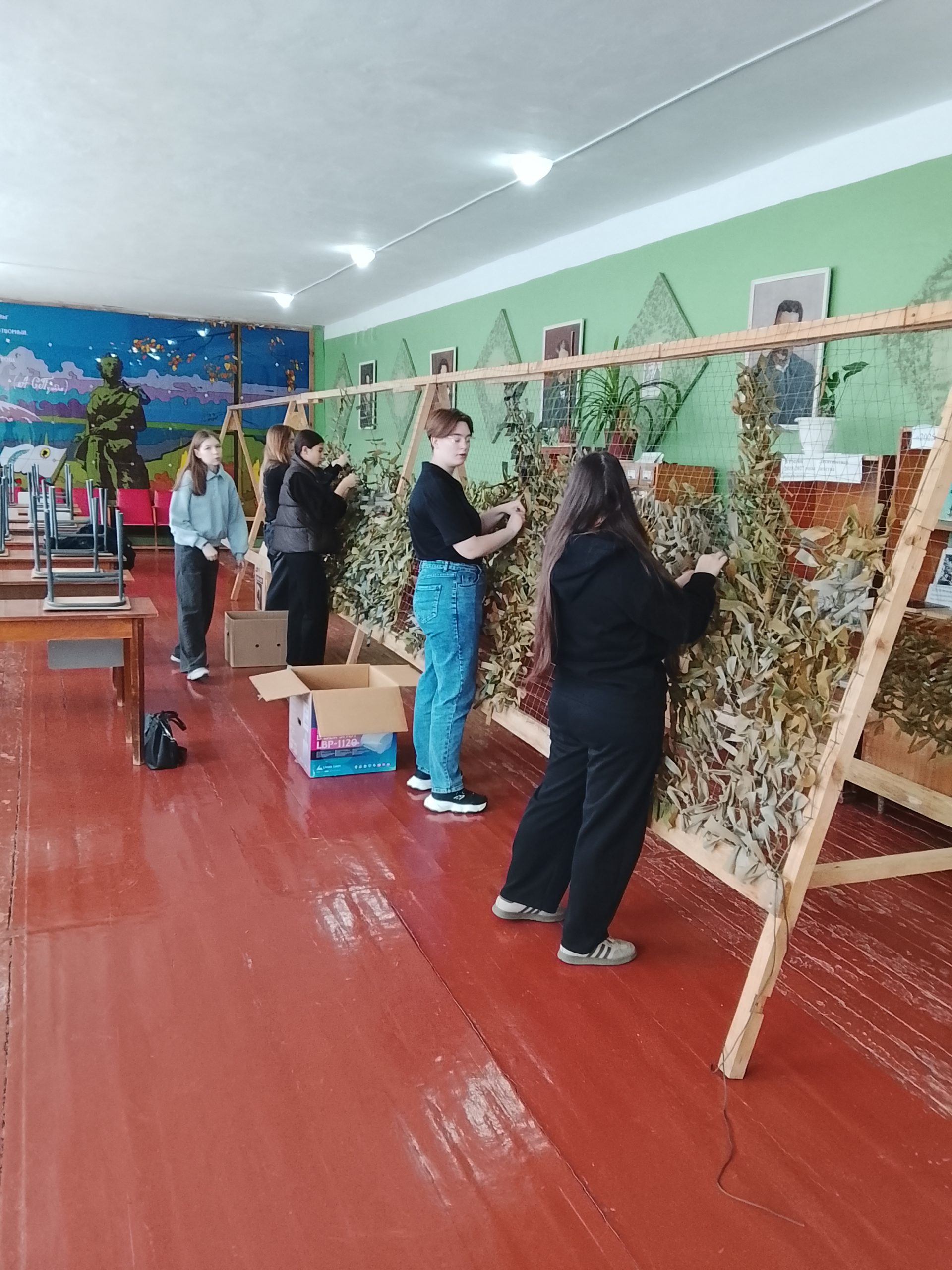 В течении 2 – х недель обучающиеся Техникума совместно с преподавателями и кураторами групп в библиотеке Техникума плели маскировочные сети для дальнейшей передачи на фронт.
