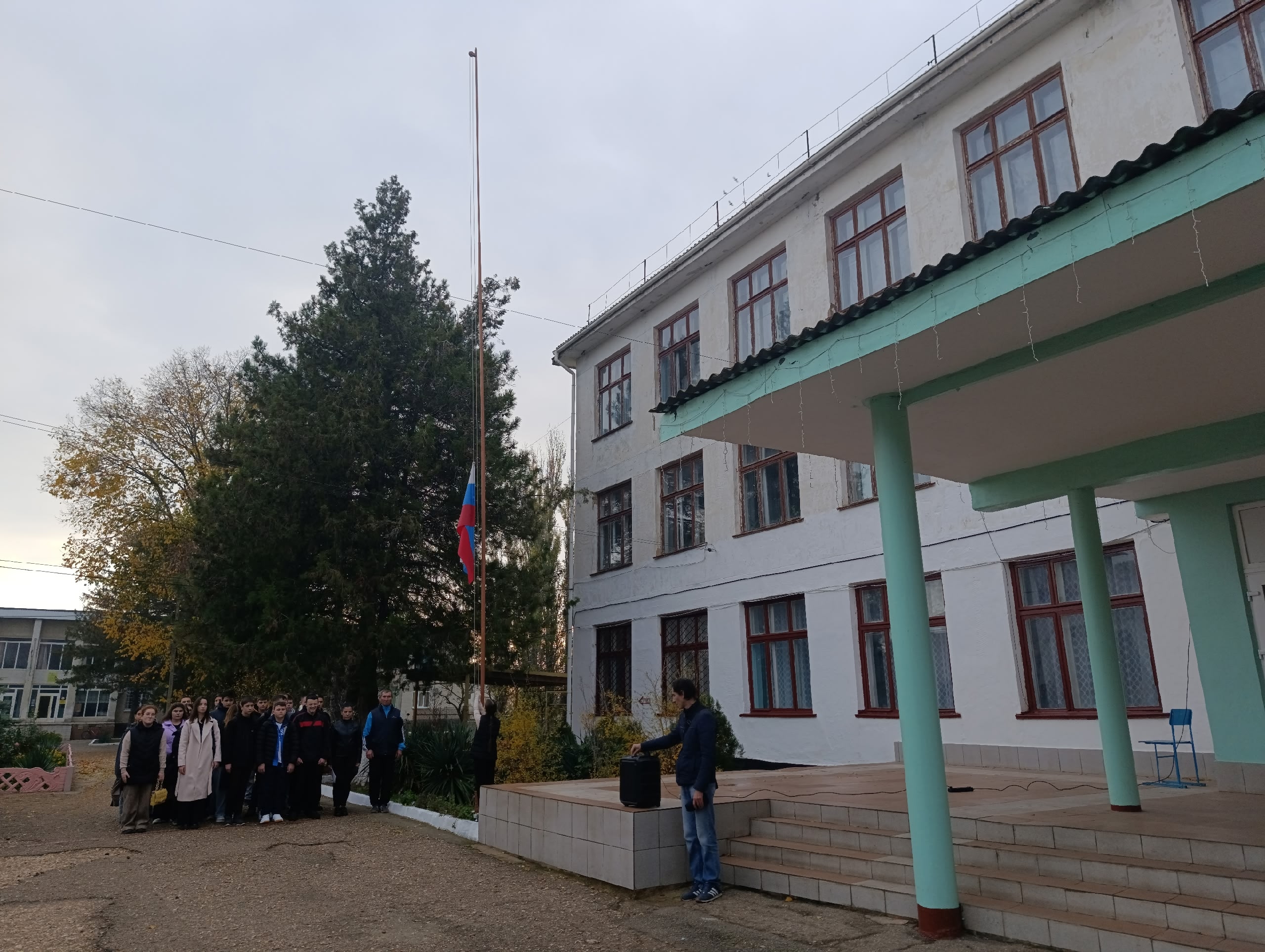 Новая учебная неделя в Техникуме начинается с традиции – поднятия Государственного Флага и исполнения Гимна РФ и Республики Крым. Право поднять Государственный Флаг Российской Федерации предоставилось обучающейся III курса специальности «Землеустройство» Герасимовой Валерии.