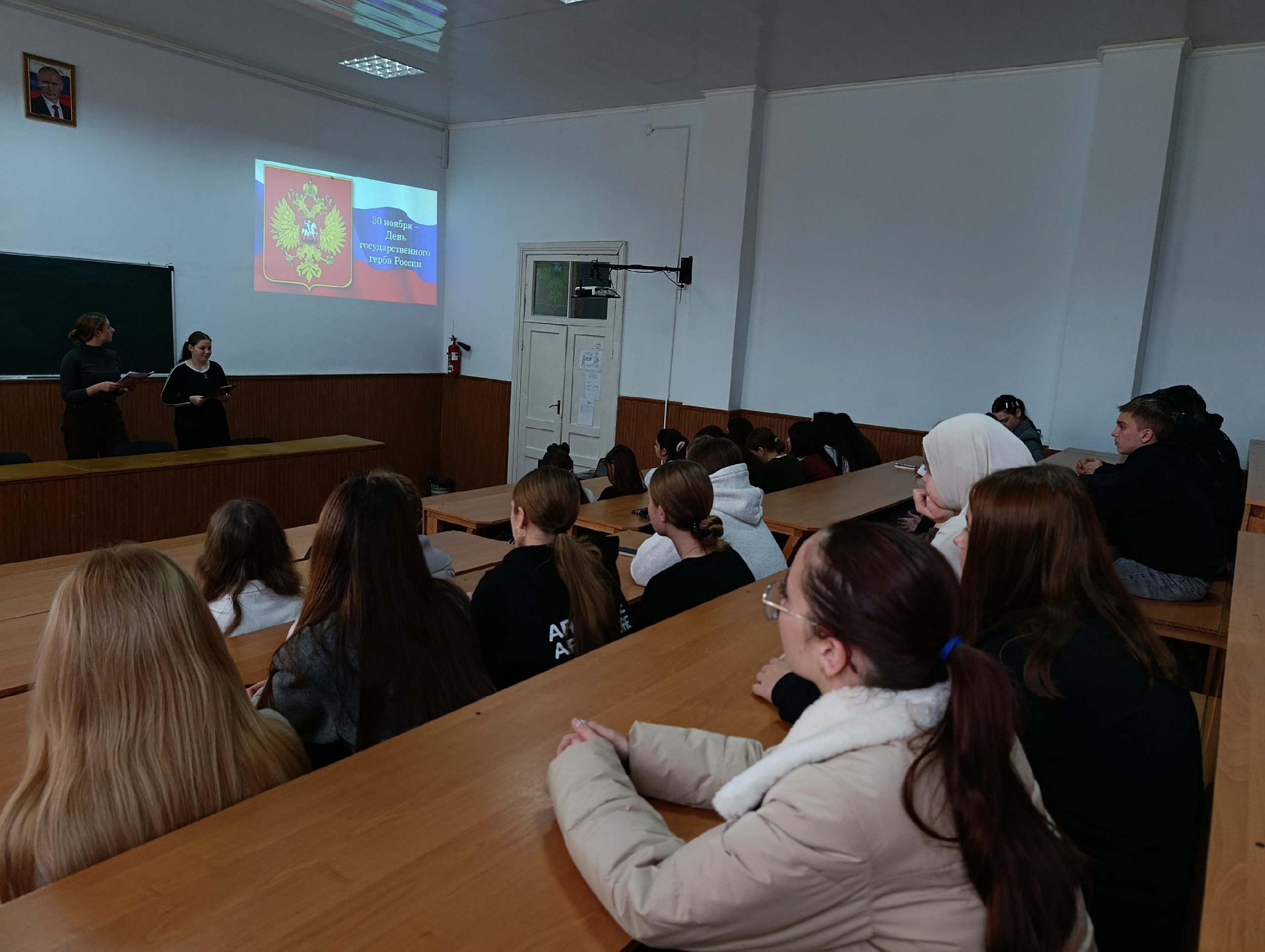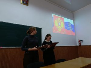 28 ноября 2025 года в лекционном зале Техникума состоялось мероприятие, посвященное Дню Государственного герба Российской Федерации, которое было подготовлено педагогом-организатором Василько Е.А. совместно с Движением Первых.