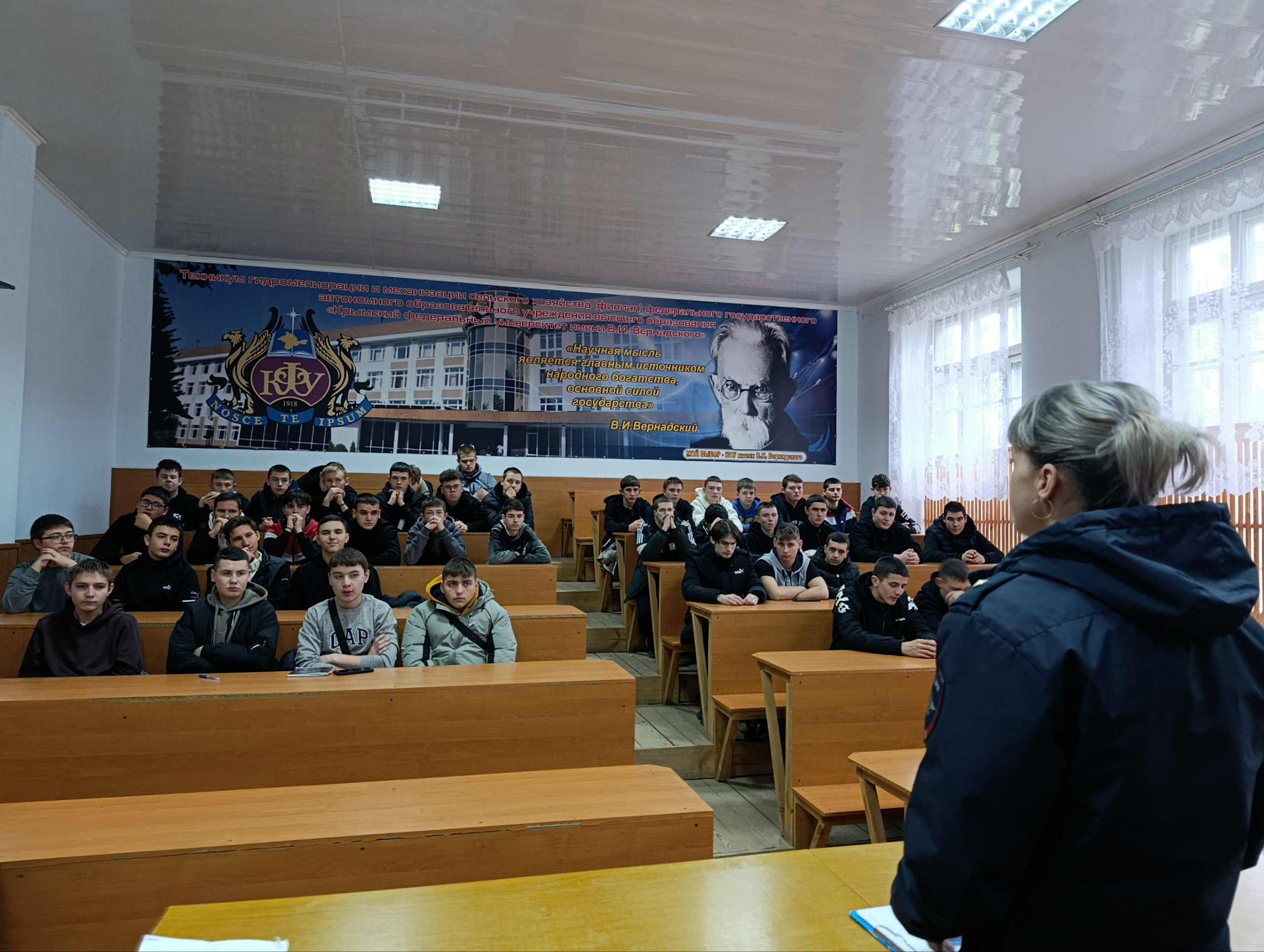 15 декабря 2025 года в лекционном зале Техникума для обучающихся была проведена беседа по профилактике безопасности дорожного движения с представителем ОГИБДД ОМВД России по Советскому району, инспектором по пропаганде безопасности дорожного движения, майором полиции Головко Еленой Алексеевной. Обучающимся напомнили о правилах перехода дороги, запрете управления транспортными средствами, недопущении совершения правонарушений, преступлений, об административной и уголовной ответственности несовершеннолетних в управлении транспортными средствами.